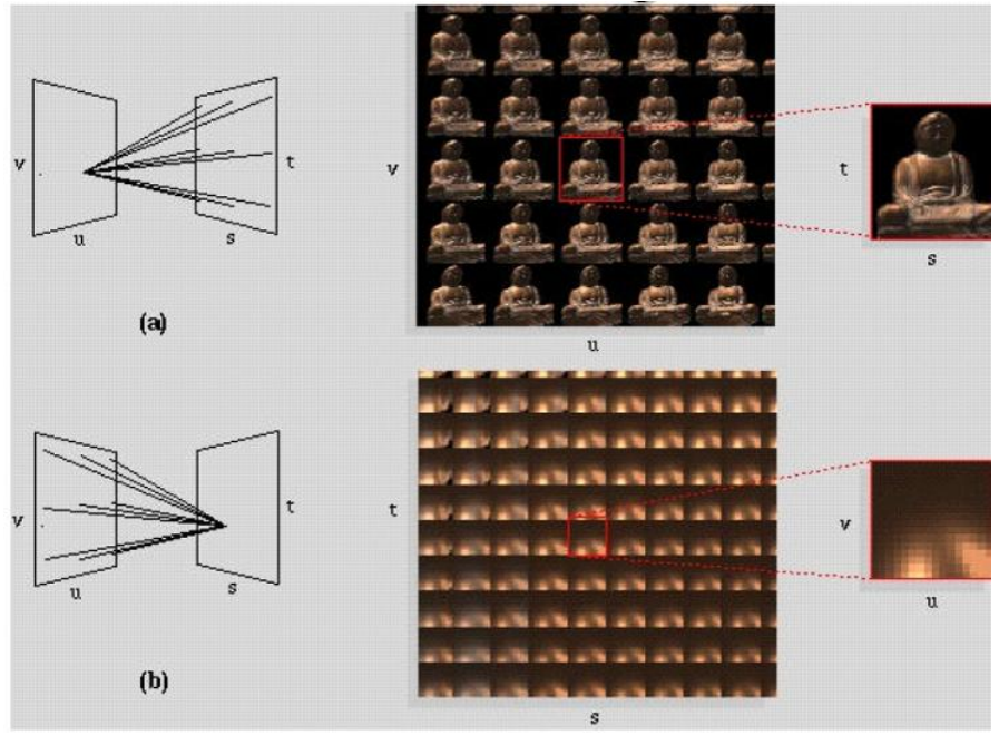 • 一种是固定(u,v)  , 看所有的(s,t)  组成一张图,也就是表示了从不同点看到的外部世界的样子