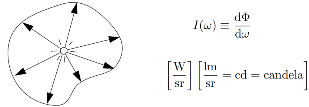 intensity 公式为: \( I = \frac{d\Phi}{d\omega} \)