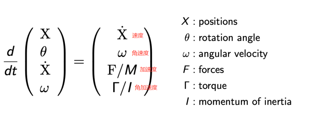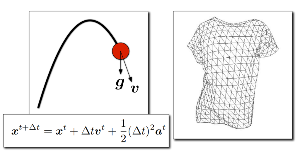 已知物体质量,给物体应用一个力,则可以算出它的加速度,再引入时间,就能算当前时刻速度、位置等一系列信息,然后就可以动态的更新下一时刻的信息从而产生动画了。