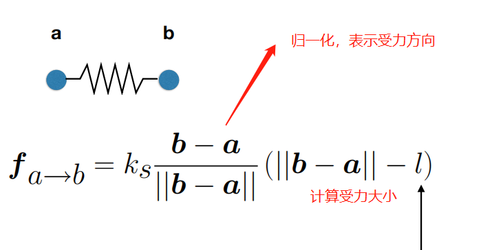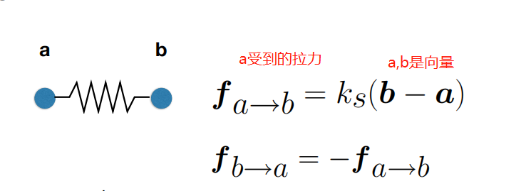 - 受力计算方法如下,只有将质点向内拉的力,ks 为弹性系数。
