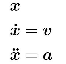 - 介绍如下记号,打点表示对时间 t 求导,位移x求导1次是速度,求导2次为加速度。(简单物理)
