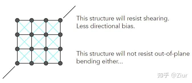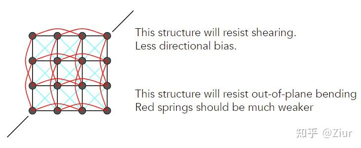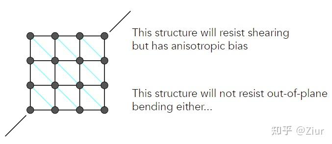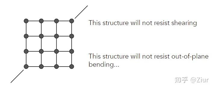 - 也可以抵抗非平面的力(红色弹簧间的力是很弱的) This structure will resist out-of-plane bending, Red springs should be much weaker
