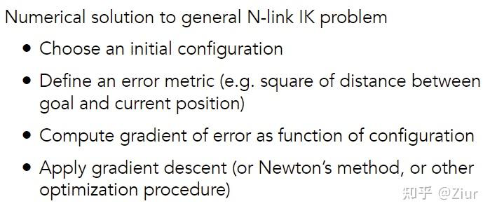 人们会采用很多优化方法(如梯度下降)去解决逆向运动学产生的问题,而不是真的求角度
