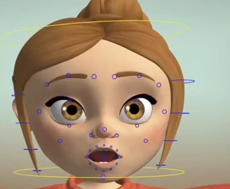 - 在角色身体、脸部等位置创造一系列控制点,艺术家通过调整控制点的位置,带动脸部其他从点移动,从而实现表情变化,动作变化等。