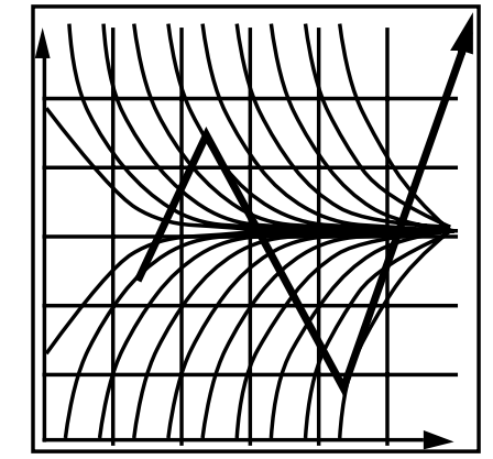 假设如下速度场,粒子初始点在下方,会被下方速度场推到右上方,又被上方的速度场推向右下方,如此交替往复。