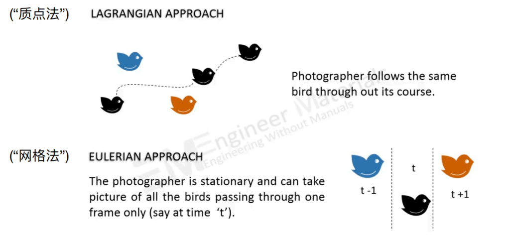 - 在模拟大量物体运动的两种思路:拉格朗日与欧拉方法 Two different views to simulating large collections of matters: Lagrangian vs. Eulerian: