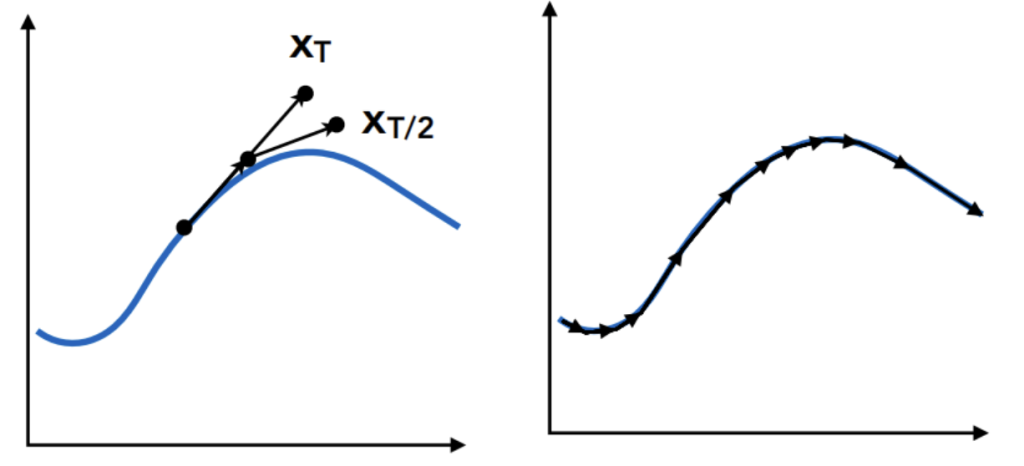 - 再用步长 T/2 做两次欧拉得到 XT/2