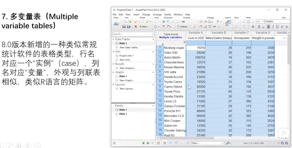 最后,Prism的表格和图表虽然有严格的对应关系,但一种图表也可用多种表格类型去绘制