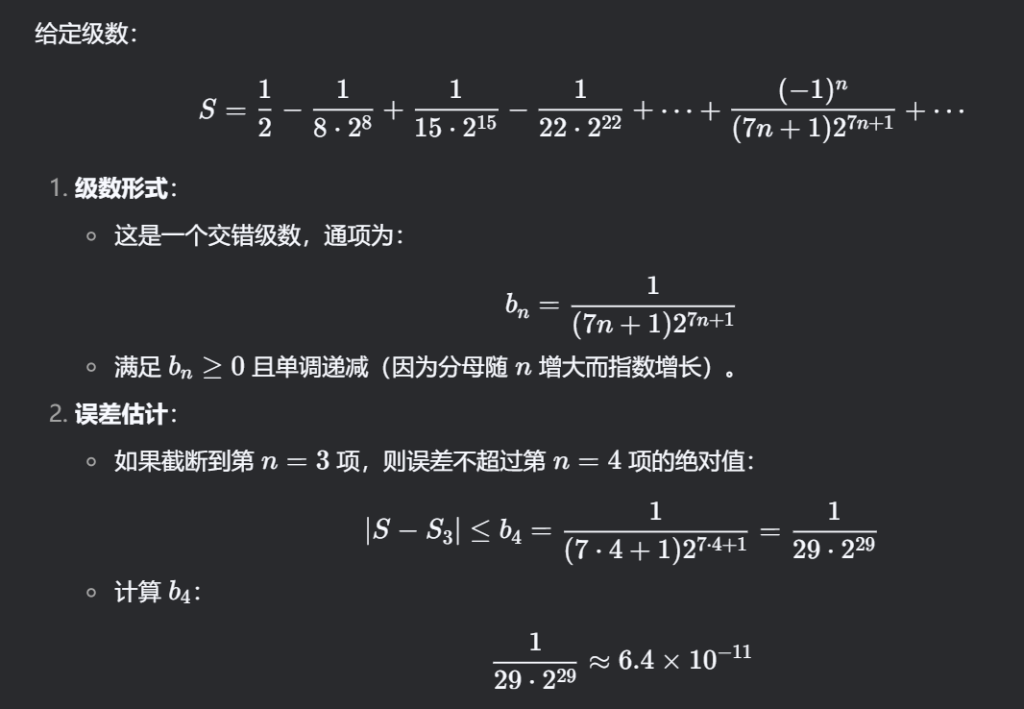 对于一个无穷级数:\(\sum_{n=1}^{\infty} a_n = a_1 + a_2 + a_3 + \cdots\)