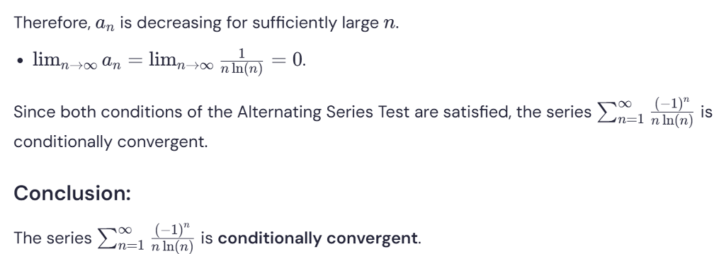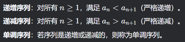 如果 \((\lim_{n \to \infty} a_n)\) 存在,序列收敛。否则,序列发散