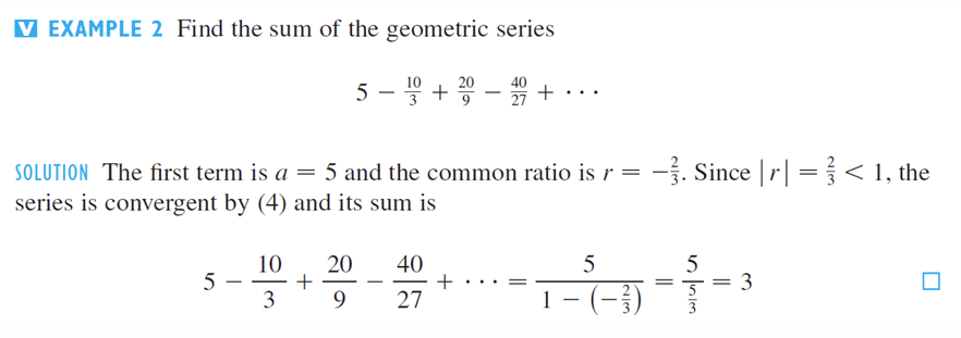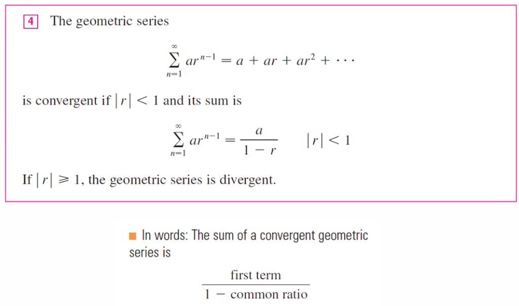 例子:\( \sum_{n=0}^{\infty} \frac{1}{2^n} = 1 + \frac{1}{2} + \frac{1}{4} + \frac{1}{8} + \cdots \)