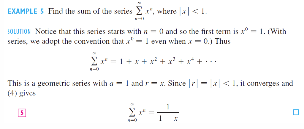 \sum_{m=0}^{\infty} x^m = \frac{1}{1-x}, \quad |x| < 1