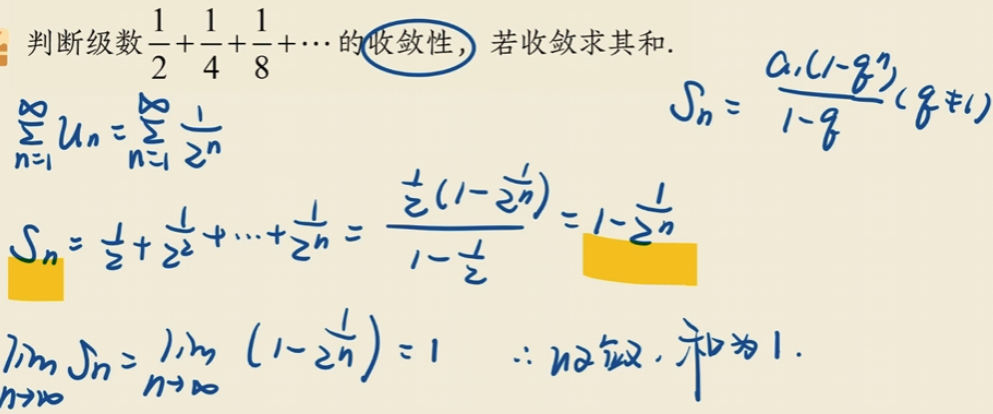 级数收敛的定义:部分和在无限项时趋于一个有限值