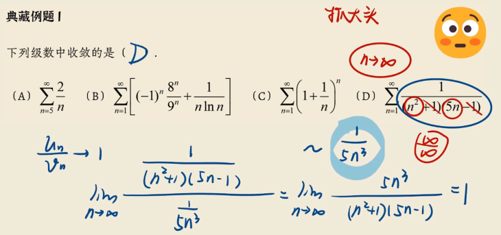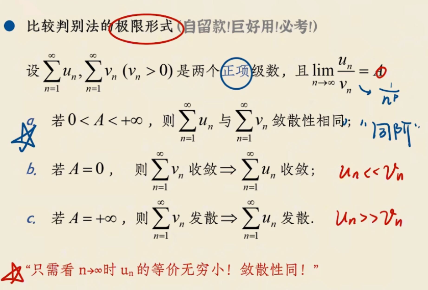 通过去掉低阶项保留高阶项得到的级数 / 已知级数与原级数相比得到敛散性