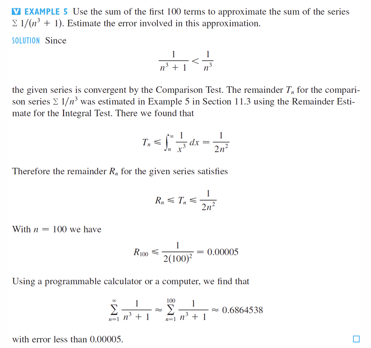 \sum_{n=1}^\infty \frac{1}{n^3} \approx s_{10} = \frac{1}{1^3} + \frac{1}{2^3} + \frac{1}{3^3} + \cdots + \frac{1}{10^3} \approx 1.1975