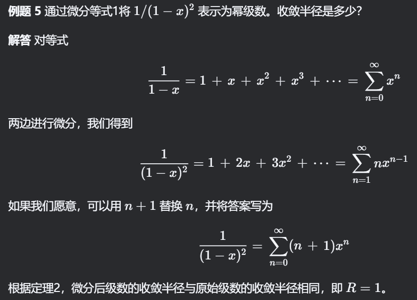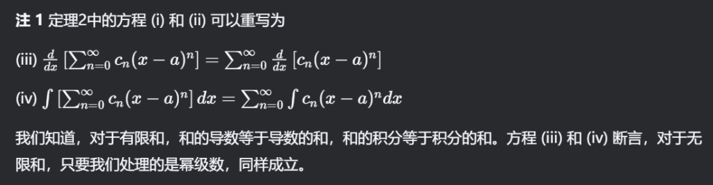 尽管定理2说幂级数在微分或积分时收敛半径保持不变,但这并不意味着收敛区间保持不变。可能会发生原始级数在端点收敛,而微分后的级数在该点发散的情况