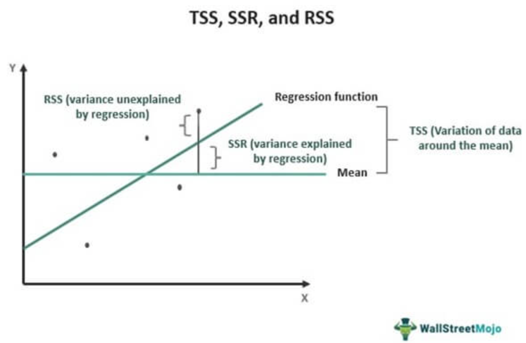 \(\text{SSR} = \sum_{i=1}^n (\hat{y}_i – \bar{y})^2\)