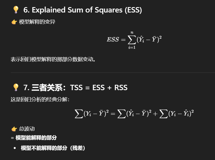 真实值和预测值之间还有差距(残差),这就是模型没解释到的波动(残差平方和)。
