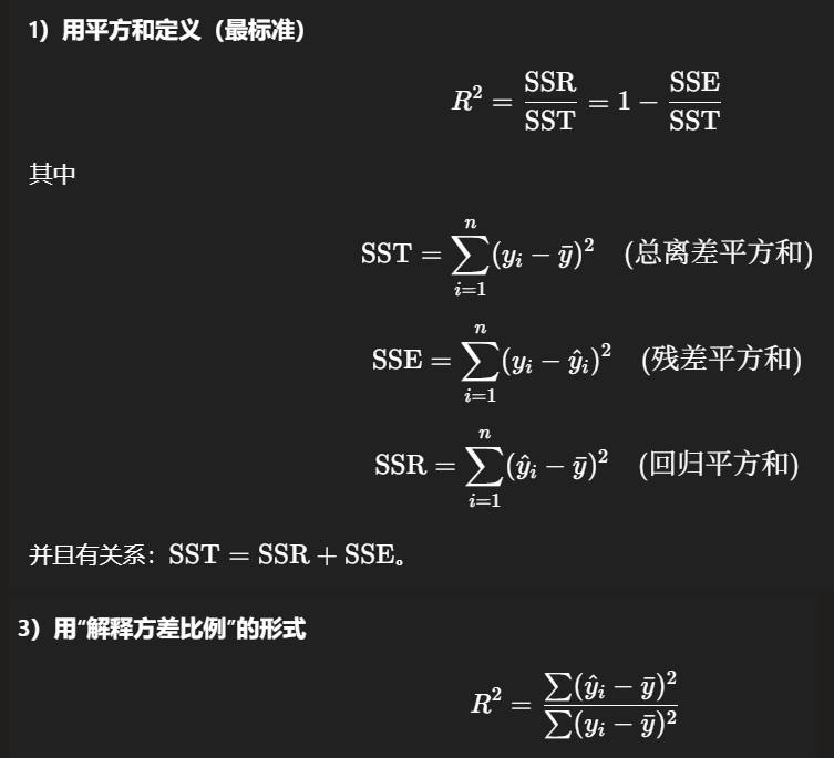 # 计算决定系数R²:模型解释的变异占总变异的比例,衡量拟合优度