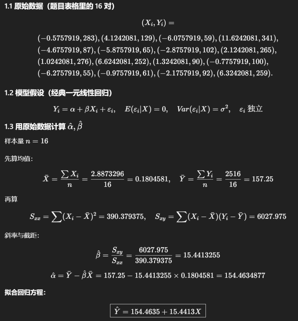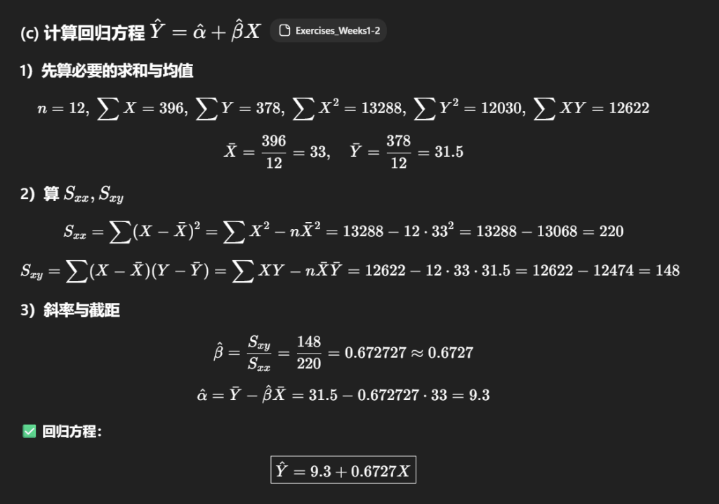 答:回归系数的 “真实值\(\beta\)” 是固定的,但 **“估计值\(\hat{\beta}\)” 是随样本变化的(因为样本是随机选的)**,所以\(\hat{\beta}\)是随机变量,自然有方差