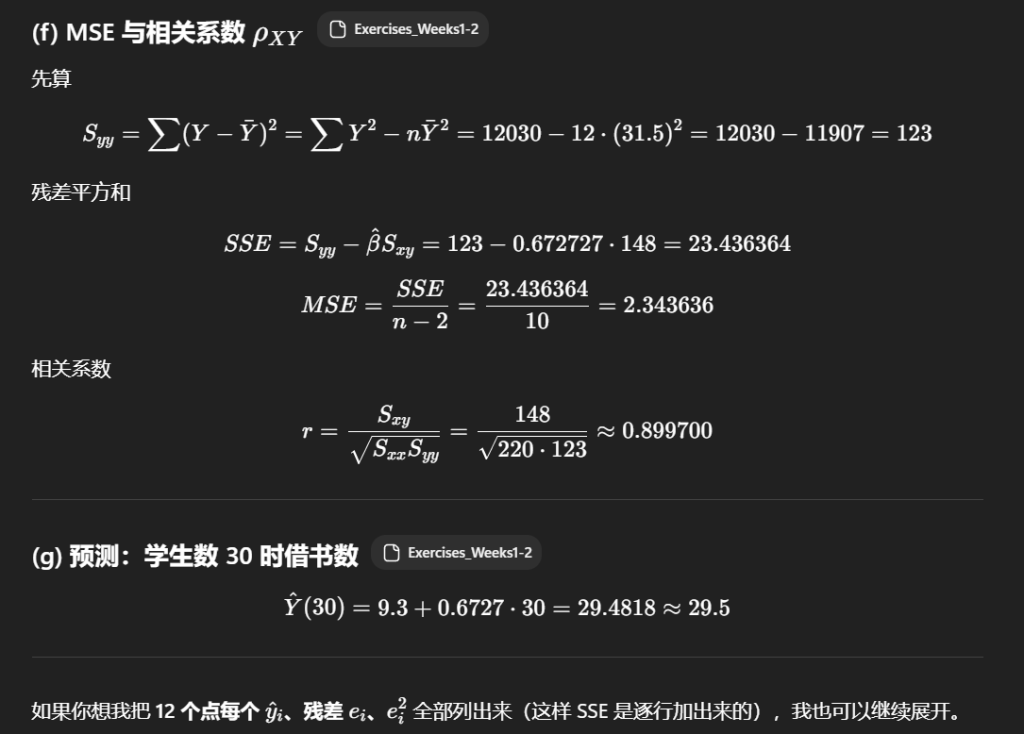 # 验证平方和分解关系:回归平方和 + 残差平方和 应近似等于总平方和(微小差异由四舍五入导致)