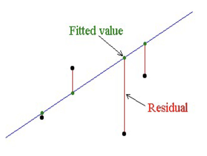 残差:真实值与拟合值之间的差值\(Y_i – \hat{Y}_i\)