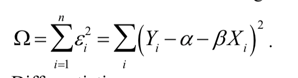 最小二乘法的核心就是:选择α,β,让 Ω(残差平方和)最小,从而得到最佳拟合直线