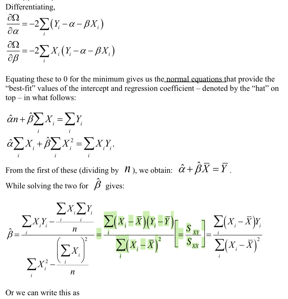 因此,我们需要通过对α和β求偏导并令其等于 0,来最小化上述函数,从而得到正规方程组,进而求出截距和回归系数的 “最佳拟合” 值