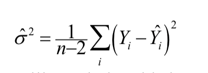 \(\hat{\sigma}^2 = \frac{1}{n-2}\sum_i(Y_i – \hat{Y}_i)^2\)