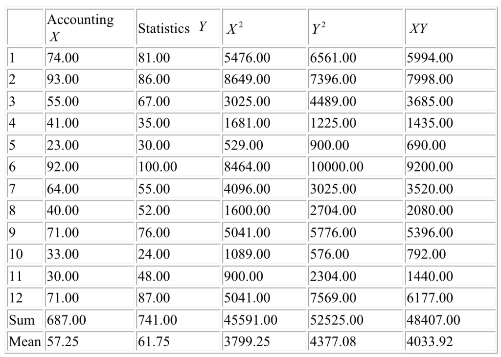 在本分析中,我们将会计学成绩视为固定变量(自变量),将统计学成绩视为因变量(或待预测的结果),首先确定描述会计学成绩与统计学成绩之间关系的模型,进而对统计学成绩进行预测