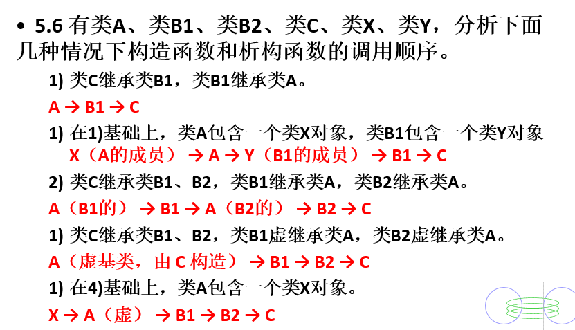 现在,由于虚基类 A 只保留 一份实例;所以必须由最底层类派生类负责初始化 A;在最后的派生类中不仅要负责对其直接基类进行初始化,还要负责对虚基类初始化。
