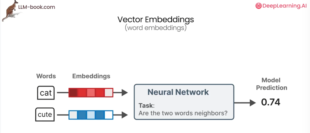 通过Word2Vec 这类浅层深度学习模型进行训练;模型以句子内共现的词为正样本、随机词为负样本,通过不断拉近相关词的向量、推远不相关词的向量)