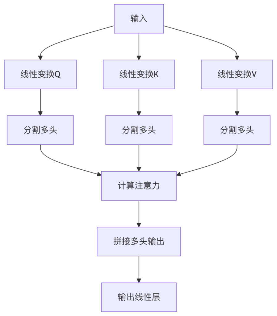 • Q(Query)、K(Key)、V(Value)是通过输入线性变换得到的矩阵。