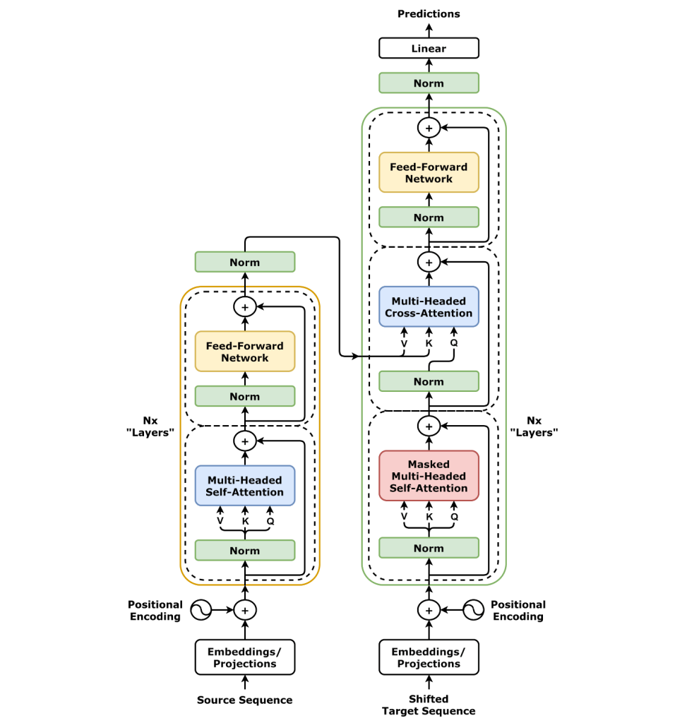 • Transformer = 完全不用 RNN/CNN,全程靠多头自注意力 + 前馈网络