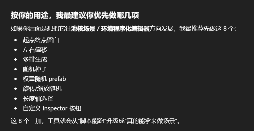 // 也就是说:这个脚本默认你的预制体“长度方向”是本地 X 轴