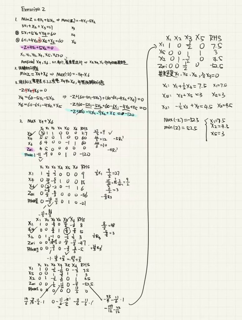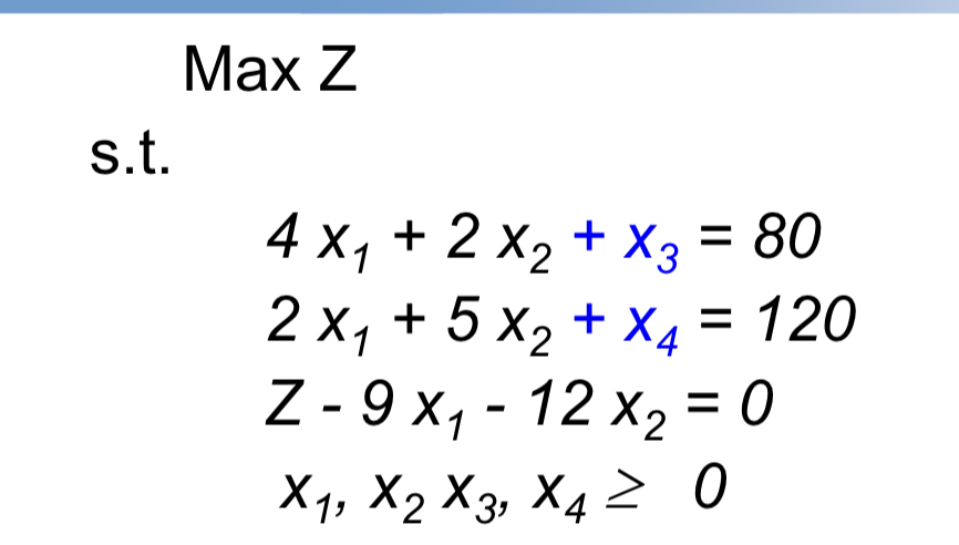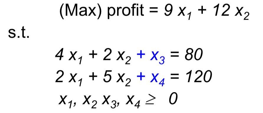 1. 加入松弛变量,将所有不等式约束转化为等式约束,构建初始单纯形表(基本变量个数 = 等式约束的数量)