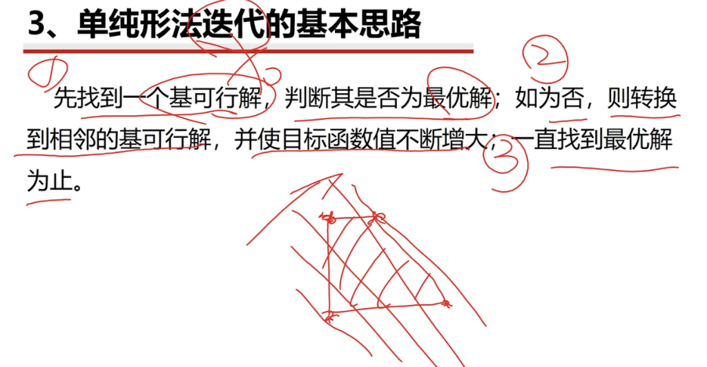 • 若当前基可行解并非最优解,算法会迭代至相邻顶点对应的另一个基可行解