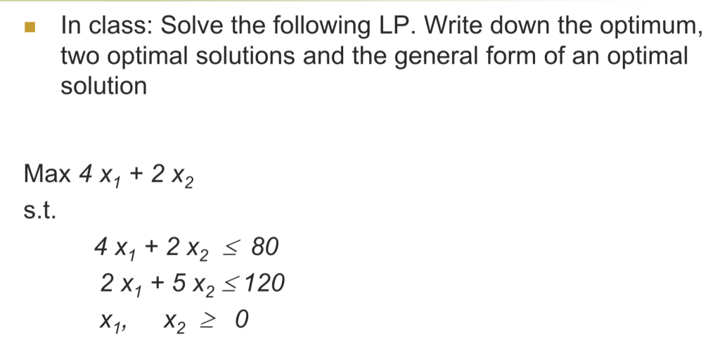 • 两个(或以上)非基变量在最终行中拥有相同的最小负系数Two (or more) non-basic variables have the same “most negative” coefficient in the last row