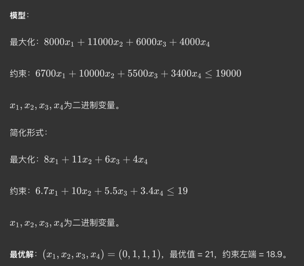 • 非基本变量 (non-basic variables):被设为 0 的变量