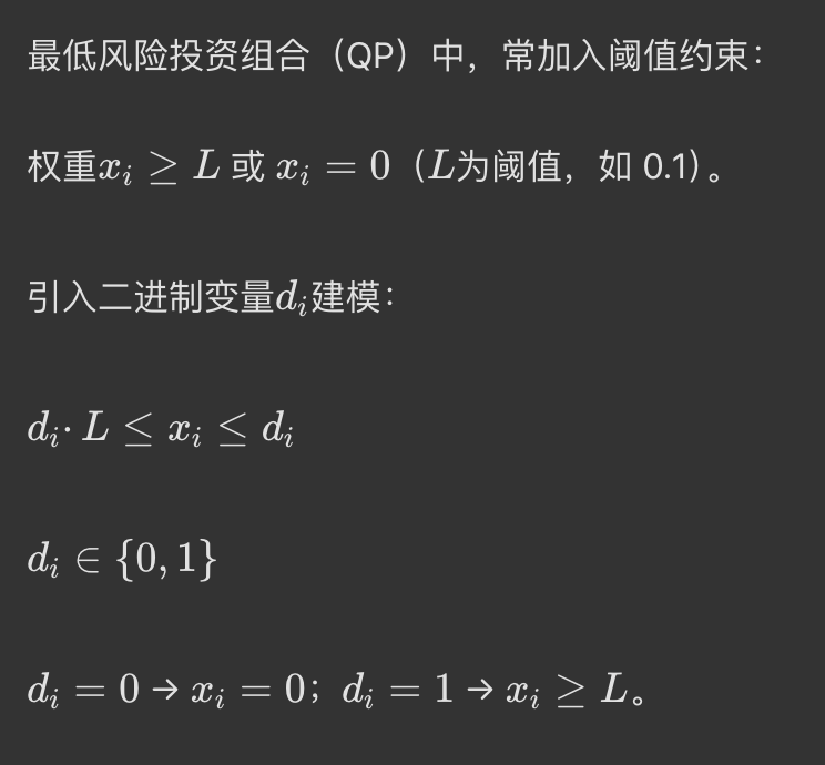 • 6. 松弛量Slack 针对“\(\le\)”型约束, \[ \text{松弛量} = \text{约束右端项} – \text{最优解处的约束左端项} \] 有效约束的松弛量为 \(0\),无效约束的松弛量大于 \(0\)。