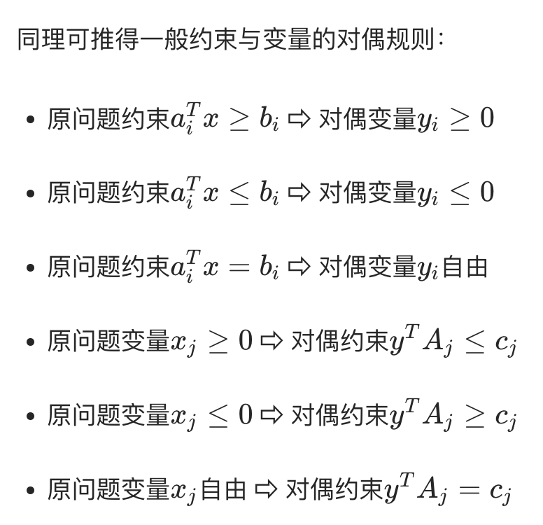 同理可推得一般约束与变量的对偶规则: