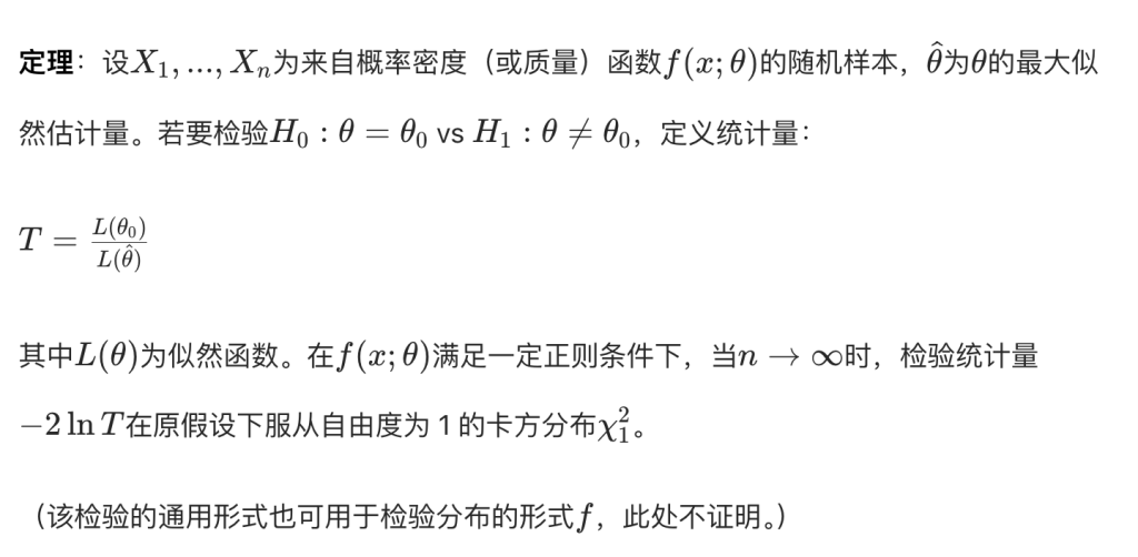 • 前述检验均为均值检验,本节介绍一种更通用的检验方法,但仅适用于大样本