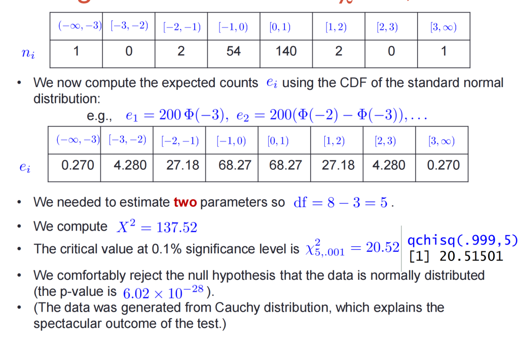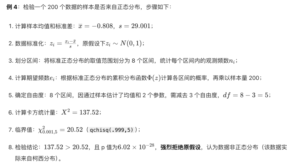 卡方拟合优度检验也可粗略应用于连续分布,核心思路是:将连续分布的取值范围划分为有限个区间,将每个区间视为一个分类变量,再进行卡方检验。