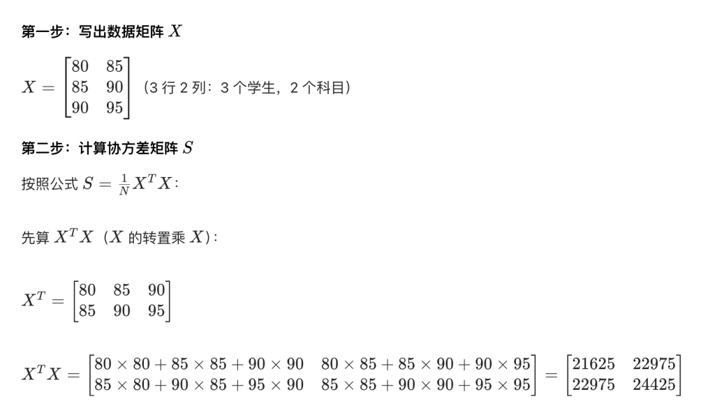 数据 X:假设我们有一组数据,比如 “10 个学生的 3 项成绩(语文、数学、英语)”,那么: