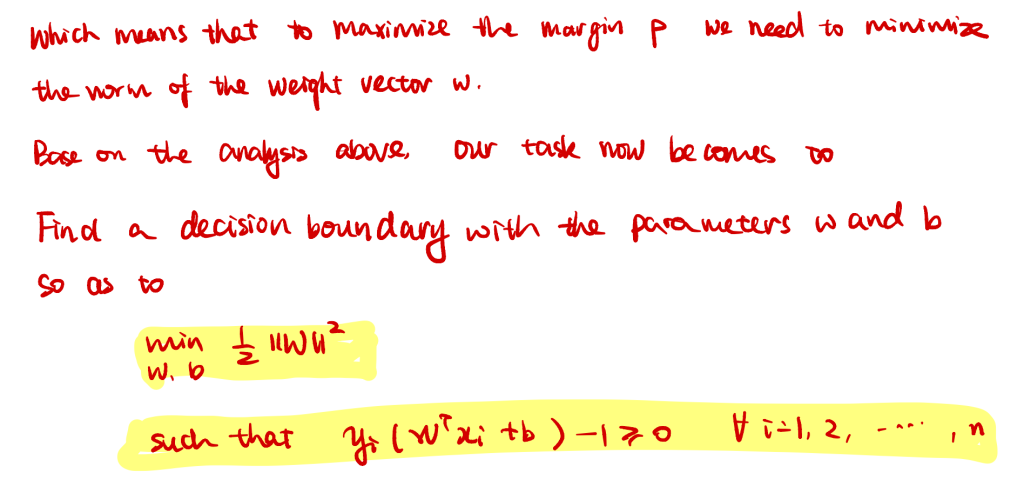yi(wTxi+b)−1≥0∀ i=1,2,⋯,n