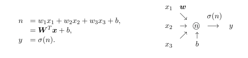 简洁表达式:y=σ(wTx+b)。