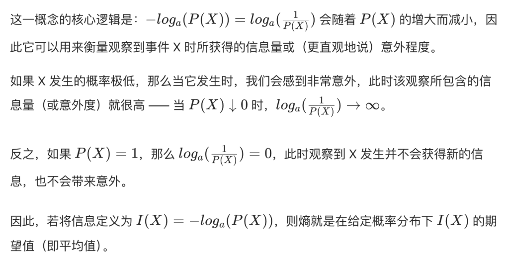 熵是衡量随机变量不确定性或意外程度的指标,熵值越大,不确定性越高。