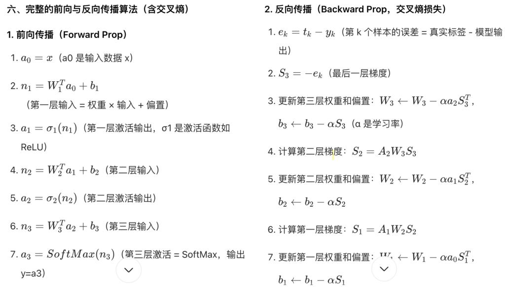 完整的前向与反向传播算法(含交叉熵)