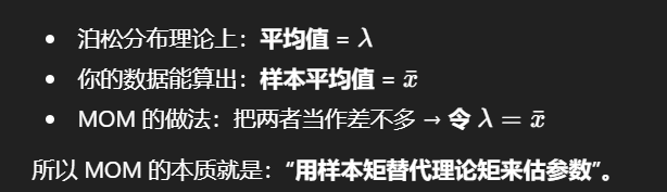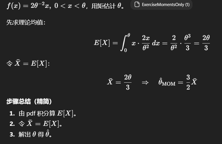一阶矩就是连续分布的期望公式计算含待估计参数的期望,再利用期望就是样本计算出的均值,联立得到参数的具体结果