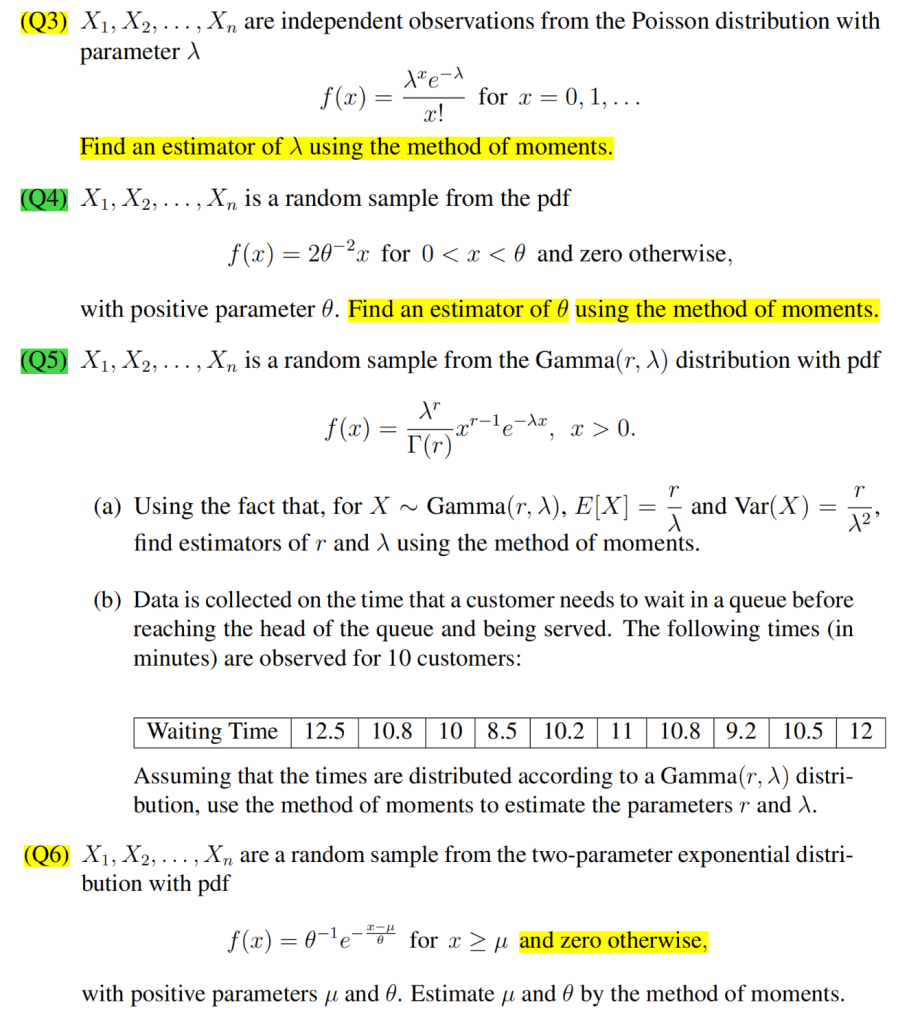 Exercise Q3 Q4 Q5 Q6 矩估计 Find an estimator using the method of moments